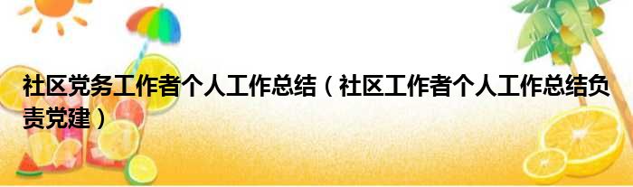 社区党务工作者个人工作总结(社区工作者个人工作总结负责党建)