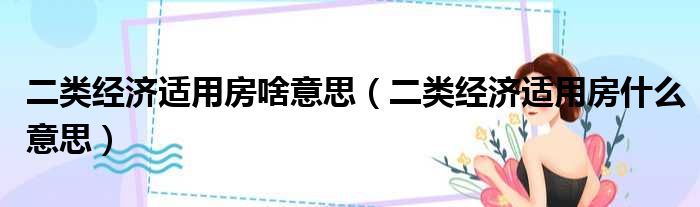 二类经济适用房啥意思(二类经济适用房什么意思)