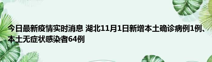 今日最新疫情实时消息 湖北11月1日新增本土确诊病例1例、本土无症状感染者64例
