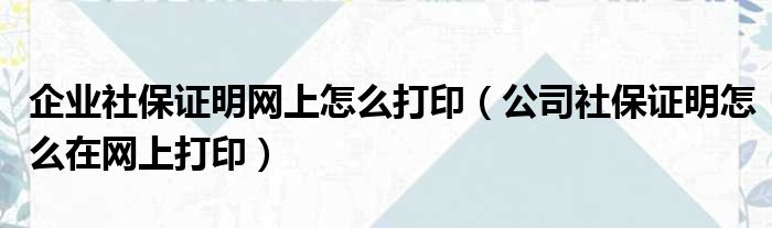 企业社保证明网上怎么打印(公司社保证明怎么在网上打印)