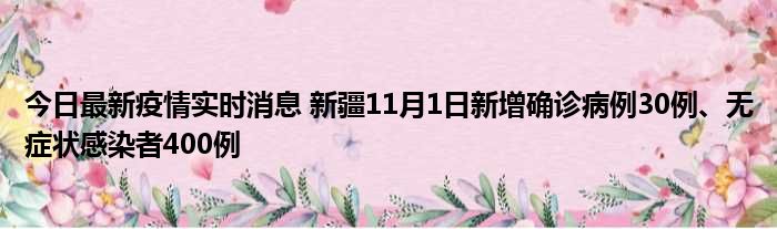 新疆卫健委通报,11月1日0时至24时,新疆维吾尔自治区新增确诊病例30例,新增无症状感染者400例,新增确诊病例治愈出院11例,新增无症状