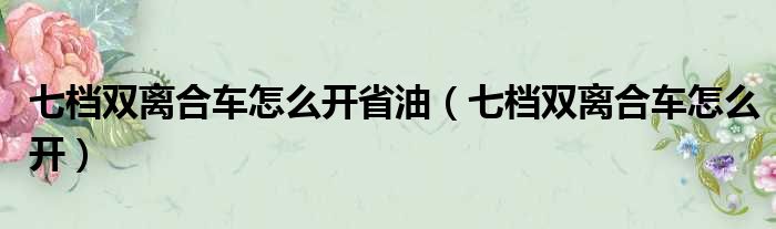七档双离合车怎么开省油(七档双离合车怎么开)