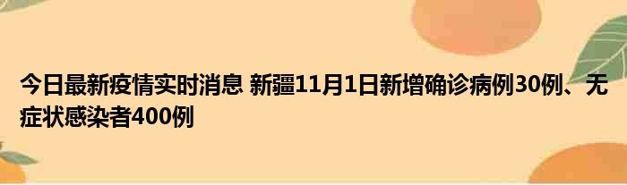 新疆卫健委通报,11月1日0时至24时,新疆维吾尔自治区新增确诊病例30例,新增无症状感染者400例,新增确诊病例治愈出院11例,新增无症状