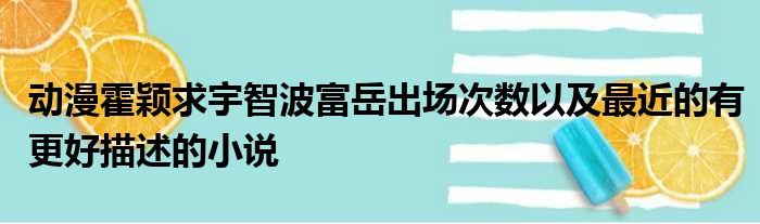 动漫霍颖求宇智波富岳出场次数以及最近的有更好描述的小说