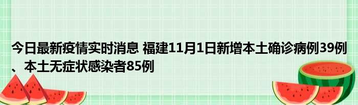 11月1日0~24时,福建省报告新增本土确诊病例39例(福州市37例,南平市2例;其中无症状感染者转确诊32例)