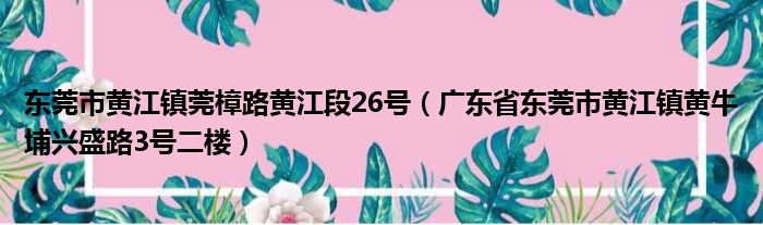 大家好,今天小六子来为大家解答以下的问题,关于东莞市黄江镇莞樟路黄江段26号,广东省东莞市黄江镇黄牛埔兴盛路3号二楼这个很多人还不知道,现在让我们一起来看看吧!