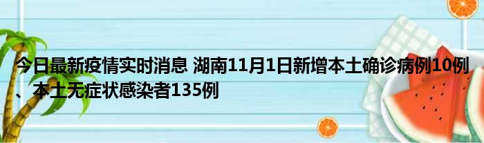 今日最新疫情实时消息 湖南11月1日新增本土确诊病例10例、本土无症状感染者135例