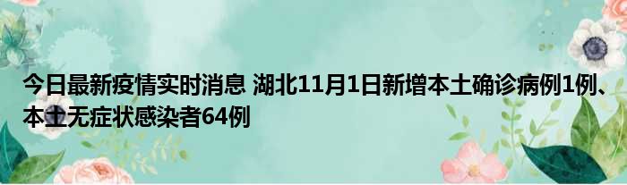 湖北卫健委通报,11月1日0-24时,全省新增本土确诊病例1例(为武汉市报告,轻型,重点人群筛查检出),新增本土无症状感染者64例(武汉市