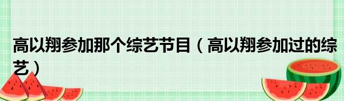 导读 大家好,今天小六子来为大家解答以下的问题,关于高以翔参加那个综艺节目,高以翔参加过的综艺这个很多人还不知道,现在让我们一起来看看吧