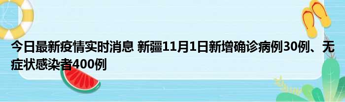 新疆卫健委通报,11月1日0时至24时,新疆维吾尔自治区新增确诊病例30例,新增无症状感染者400例,新增确诊病例治愈出院11例,新增无症状