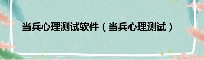 大家好,今天小六子来为大家解答以下的问题,关于当兵心理测试软件,当兵心理测试这个很多人还不知道,现在让我们一起来看看吧!