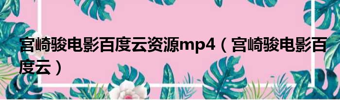 大家好,今天小六子来为大家解答以下的问题,关于宫崎骏电影百度云资源mp4,宫崎骏电影百度云这个很多人还不知道,现在让我们一起来看看吧!