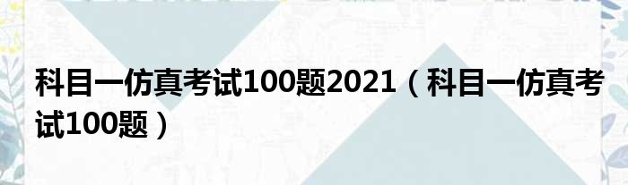 导读 大家好,今天小六子来为大家解答以下的问题,关于科目一仿真考试100题2021,科目一仿真考试100题这个很多人还不知道,现在让我们一起来看看