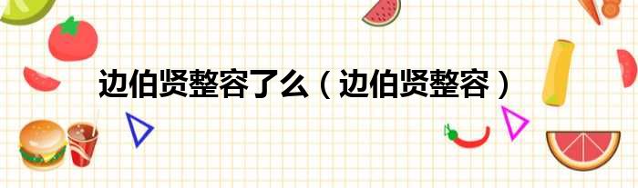 导读 大家好,今天小六子来为大家解答以下的问题,关于边伯贤整容了么,边伯贤整容这个很多人还不知道,现在让我们一起来看看吧!1、没整容。2、