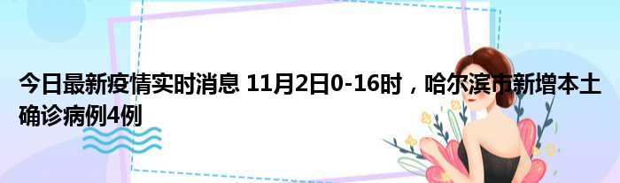 今日最新疫情实时消息 11月2日0-16时,哈尔滨市新增本土确诊病例4例