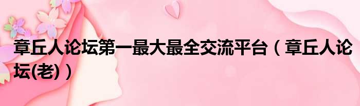 导读 大家好,今天小六子来为大家解答以下的问题,关于章丘人论坛第一最大最全交流平台,章丘人论坛(老)这个很多人还不知道,现在让我们一起来看