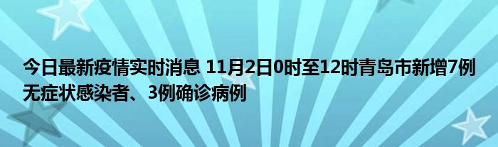 您的位置:首页 >房产频道 > 综合精选 > 今日最新疫情实时消息 11月2日0时至12时青岛市新增7例无症状感染者、3例确诊病例 2022-11-04 06:20:13 • 来源: 导读 免责声明:本文由用户上传,如有侵权请联系删除! 上一篇:国家公诉小说结局(国家公诉小说) 下一篇:斯库林蝶泳技术特点(斯库林)