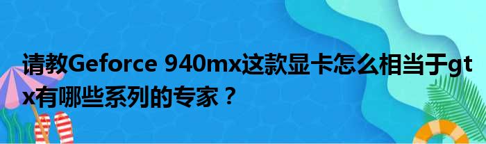 请教Geforce 940mx这款显卡怎么相当于gtx有哪些系列的专家?