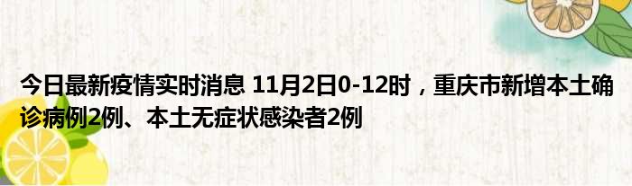 今日最新疫情实时消息 11月2日0-12时,重庆市新增本土确诊病例2例、本土无症状感染者2例