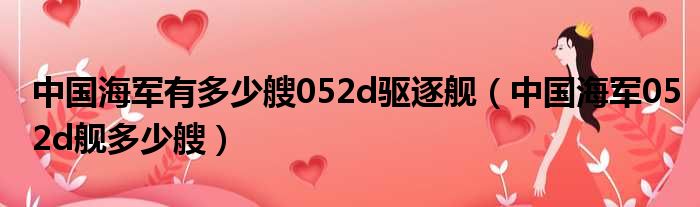 导读 大家好,今天小六子来为大家解答以下的问题,关于中国海军有多少艘052d驱逐舰,中国海军052d舰多少艘这个很多人还不知道,现在让我们一起来