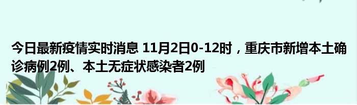 今日最新疫情实时消息 11月2日0-12时,重庆市新增本土确诊病例2例、本土无症状感染者2例