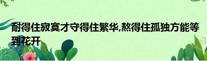 耐得住寂寞才守得住繁华,熬得住孤独方能等到花开