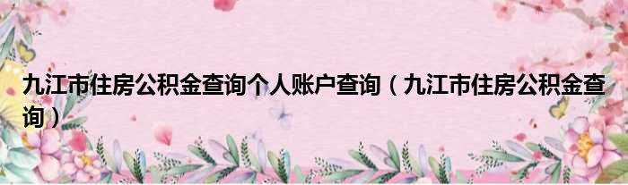 九江市住房公积金查询个人账户查询(九江市住房公积金查询)