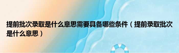 提前批次录取是什么意思需要具备哪些条件(提前录取批次是什么意思)