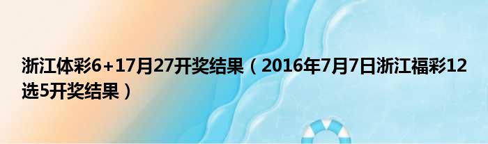 浙江体彩6+17月27开奖结果(2016年7月7日浙江福彩12选5开奖结果)