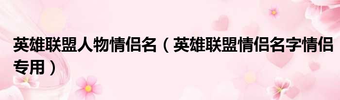 英雄联盟人物情侣名(英雄联盟情侣名字情侣专用)