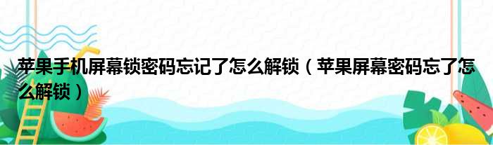苹果手机屏幕锁密码忘记了怎么解锁(苹果屏幕密码忘了怎么解锁)