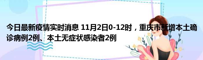 今日最新疫情实时消息 11月2日0-12时,重庆市新增本土确诊病例2例、本土无症状感染者2例