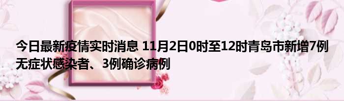 您的位置:首页 >房产频道 > 综合精选 > 今日最新疫情实时消息 11月2日0时至12时青岛市新增7例无症状感染者、3例确诊病例 2022-11-04 12:14:11 • 来源: 导读 免责声明:本文由用户上传,如有侵权请联系删除! 上一篇:戏影彭十六mp3百度云(戏影彭十六mp3下载) 下一篇:语言sqrt函数的用法