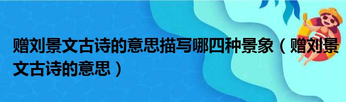 导读 大家好,今天小六子来为大家解答以下的问题,关于赠刘景文古诗的意思描写哪四种景象,赠刘景文古诗的意思这个很多人还不知道,现在让我们一