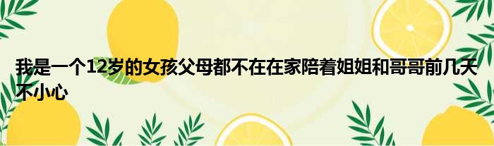 大家好,今天小六子来为大家解答以下的问题,关于我是一个12岁的女孩父母都不在在家陪着姐姐和哥哥前几天不小心这个很多人还不知道,现在让我们一起来看看吧!