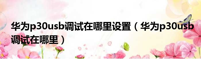 华为p30usb调试在哪里设置(华为p30usb调试在哪里)