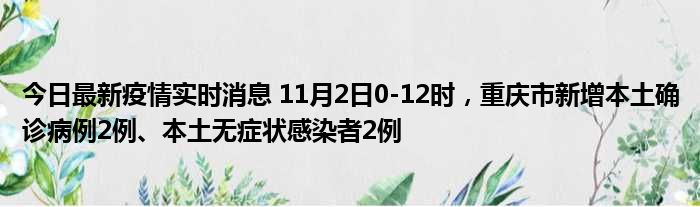 今日最新疫情实时消息 11月2日0-12时,重庆市新增本土确诊病例2例、本土无症状感染者2例