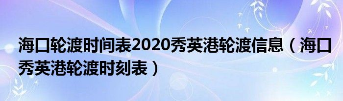 导读 大家好,今天小六子来为大家解答以下的问题,关于海口轮渡时间表2020秀英港轮渡信息,海口秀英港轮渡时刻表这个很多人还不知道,现在让我们