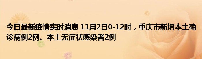 今日最新疫情实时消息 11月2日0-12时,重庆市新增本土确诊病例2例、本土无症状感染者2例