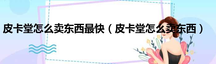 皮卡堂怎么卖东西最快(皮卡堂怎么卖东西)