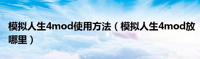 导读 大家好,今天小六子来为大家解答以下的问题,关于模拟人生4mod使用方法,模拟人生4mod放哪里这个很多人还不知道,现在让我们一起来看看吧!1