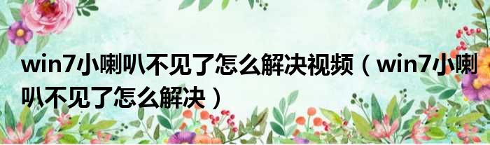win7小喇叭不见了怎么解决视频(win7小喇叭不见了怎么解决)