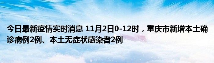 今日最新疫情实时消息 11月2日0-12时,重庆市新增本土确诊病例2例、本土无症状感染者2例