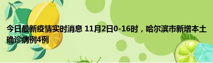今日最新疫情实时消息 11月2日0-16时,哈尔滨市新增本土确诊病例4例