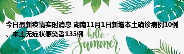 今日最新疫情实时消息 湖南11月1日新增本土确诊病例10例、本土无症状感染者135例