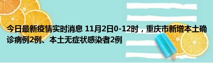 今日最新疫情实时消息 11月2日0-12时,重庆市新增本土确诊病例2例、本土无症状感染者2例