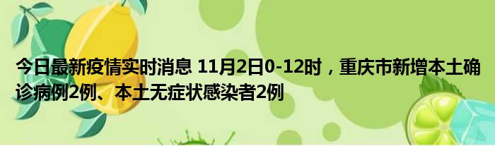 今日最新疫情实时消息 11月2日0-12时,重庆市新增本土确诊病例2例、本土无症状感染者2例