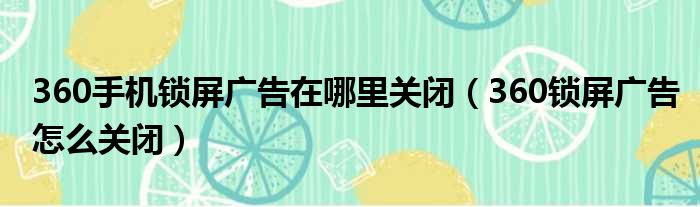 360手机锁屏广告在哪里关闭(360锁屏广告怎么关闭)