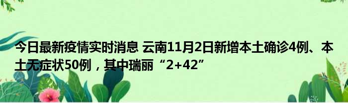 今日最新疫情实时消息 云南11月2日新增本土确诊4例、本土无症状50例,其中瑞丽“2+42”
