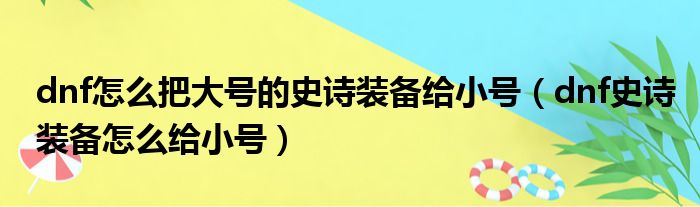 dnf怎么把大号的史诗装备给小号(dnf史诗装备怎么给小号)